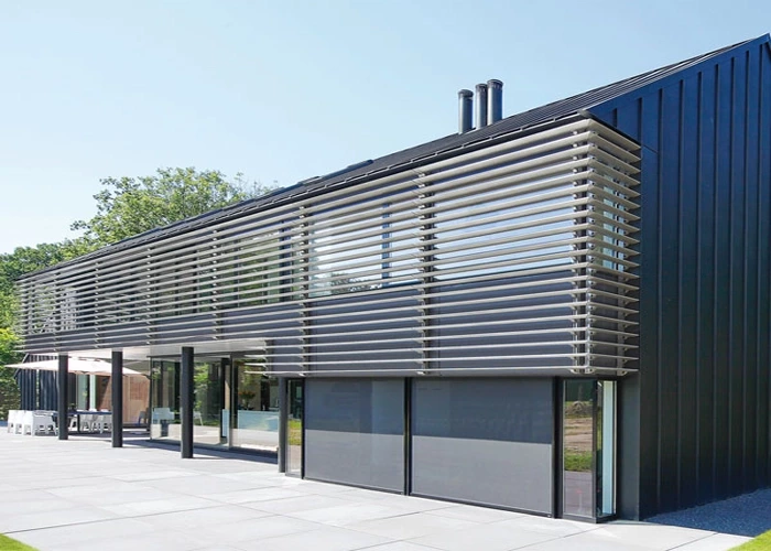 نمای لوور (Louver) سیستمی از تیغهها یا پرههای موازی است که معمولاً از جنس آلومینیوم، فولاد، چوب یا کامپوزیت ساخته میشوند و با زاویه خاصی در نمای ساختمان نصب میگردند. هدف اصلی لوور کنترل ورود نور خورشید، کاهش تابش مستقیم و جلوگیری از افزایش دمای داخلی ساختمان است، در حالی که همچنان امکان تهویه و عبور جریان هوا وجود دارد. طراحی لوور میتواند ثابت یا متحرک باشد و در رنگها و شکلهای متنوع، هماهنگ با معماری ساختمان، تولید شود.