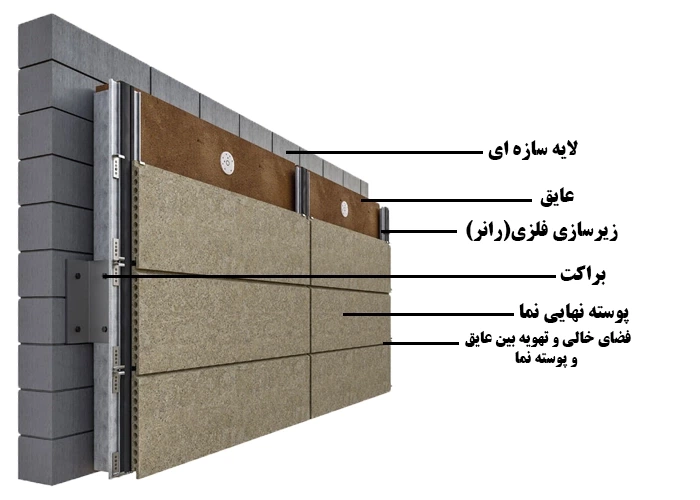 نمای خشک معمولاً از چند لایه اصلی تشکیل میشود: